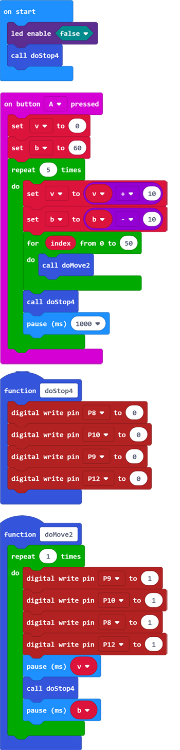 | 11. | MOTOR - KONTROLA SMJERA OKRETANJA TIPKAMA "A" I "B" | 24. | KORAČNI MOTOR (BIPOLAR) - POLUKORAK | ||||||