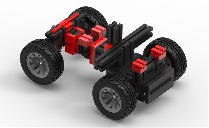 Model vozila koje ima pogon na sva četiri kotača. Zadnji kotači su pomični i križno povezani. Mogu se koristiti ENKODER motori ili XM motori. Pomični zadnji kotači omogućavaju vozilu puno lakše skretanje. Pogonski motori u kompletu su ENKODER motori. Upute za sklapanje možete skinuti na: Upute - ostali modeli (28).